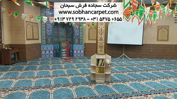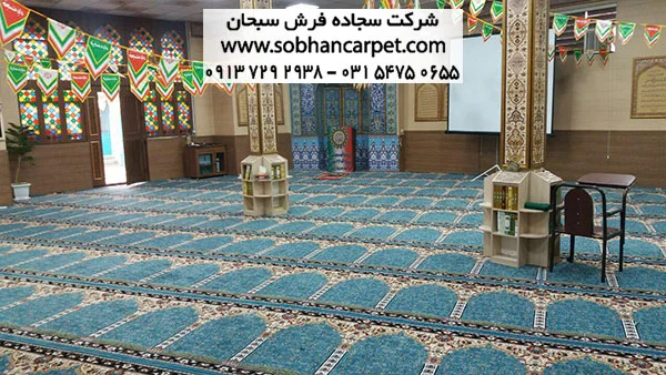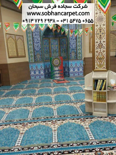 نصب فرش سجاده ای کاشان طرح آسایش در مسجد