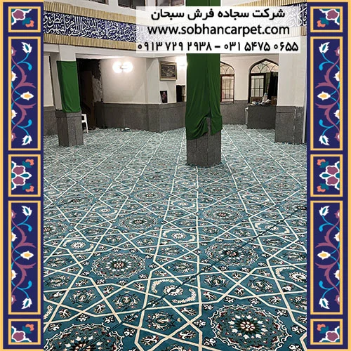 فرش سجاده ای یکپارچه طرح خاتم آبی برای فضای معنوی مساجد